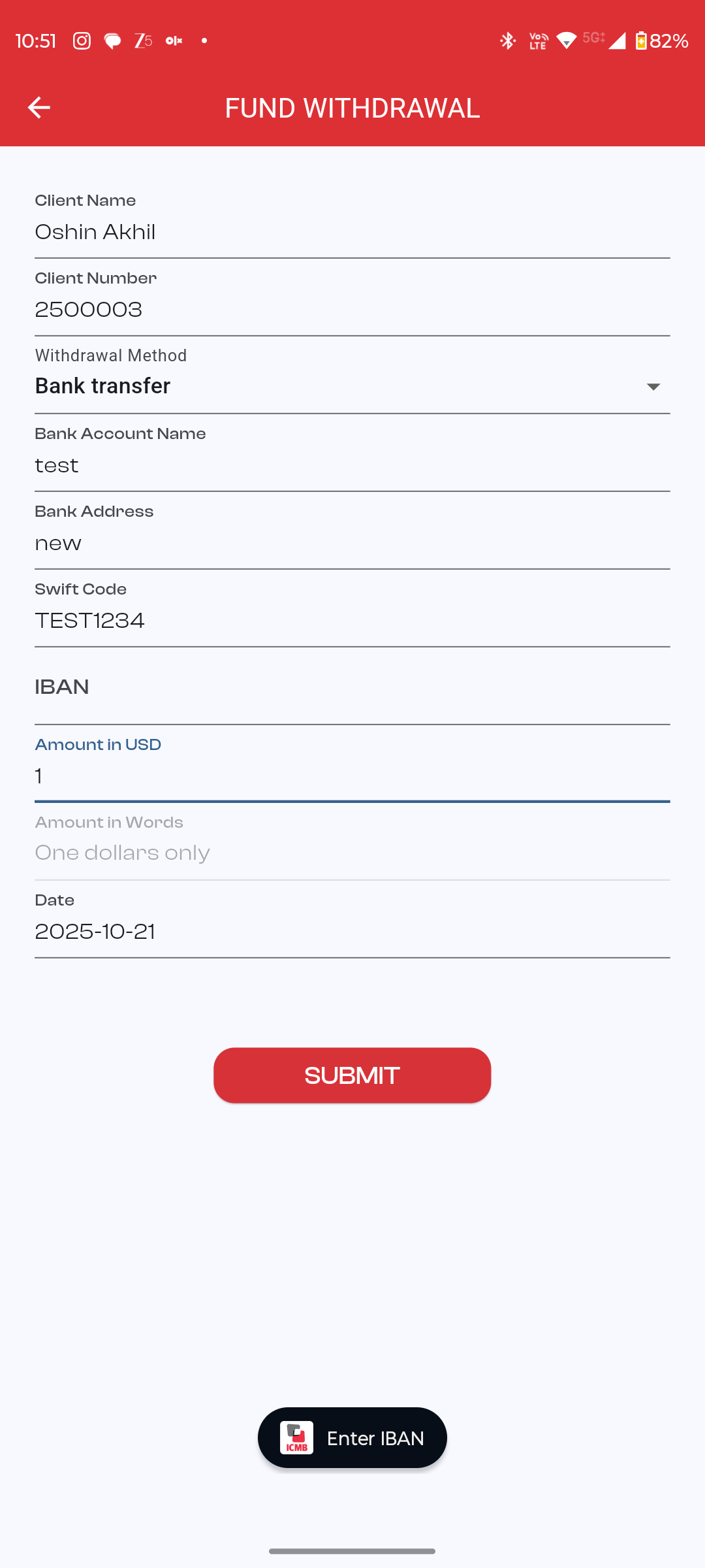 Facing Validation error in IBAN field -ICMB FUND WITHDRAWAL-BANK TRANSFER.