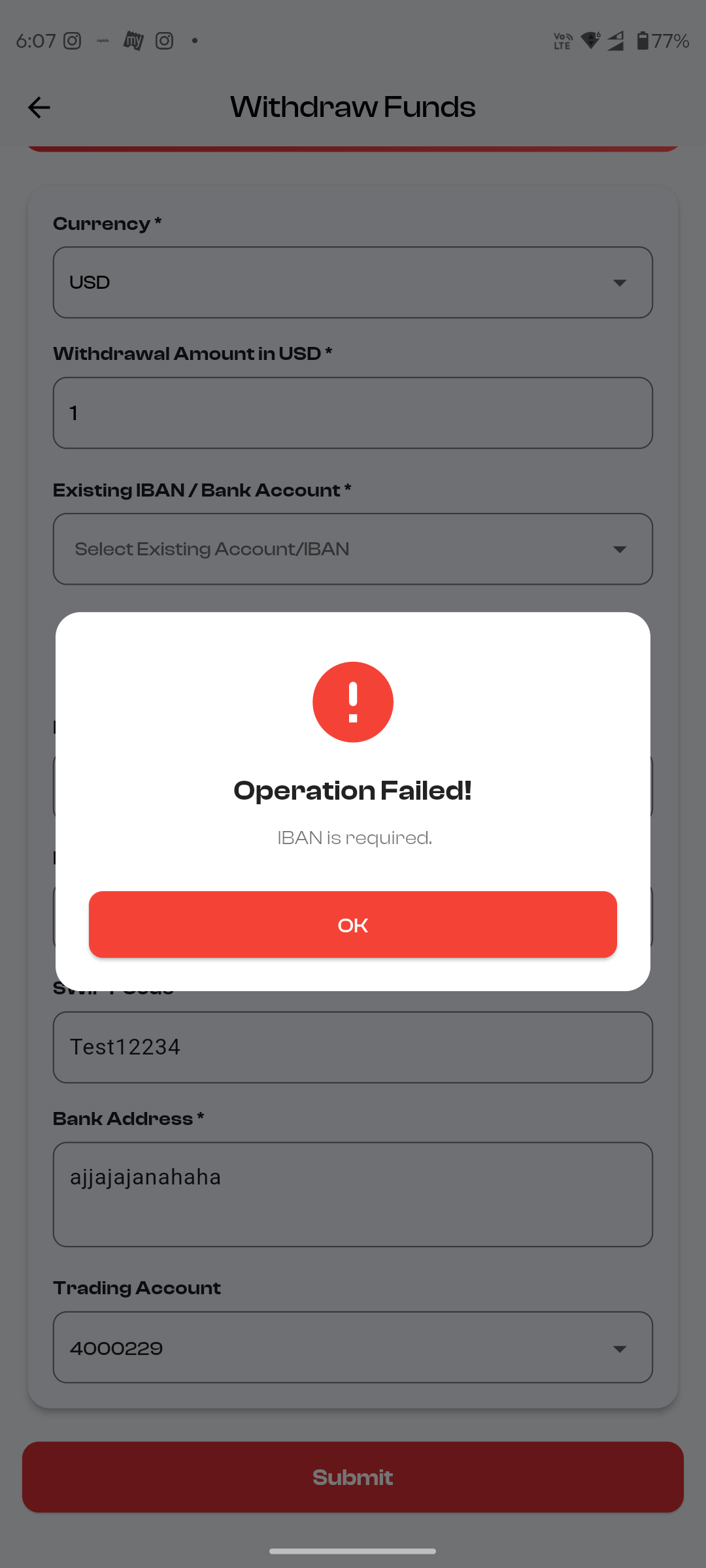 closedICMB Investor Portal Withdrawal bank transfer IBAN getting Failed