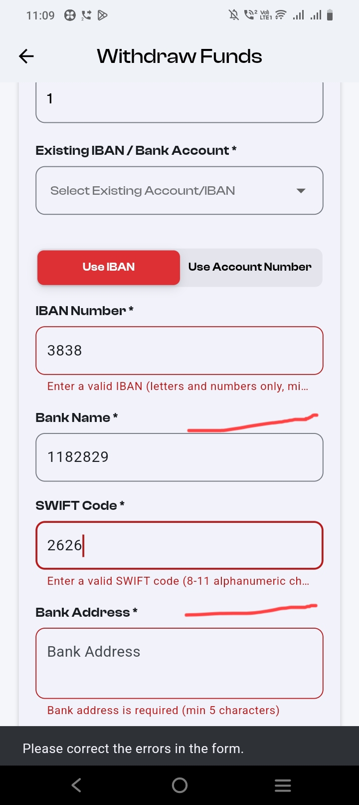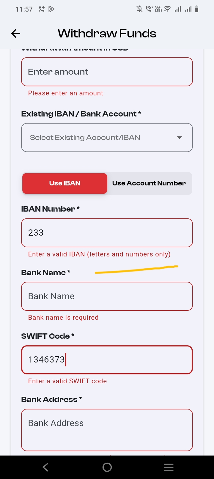 closedICM BROKERS MOBILE APPLICATION MAURITIUS - The validation text is not readable in the IBAN number and SWIFT code fields.