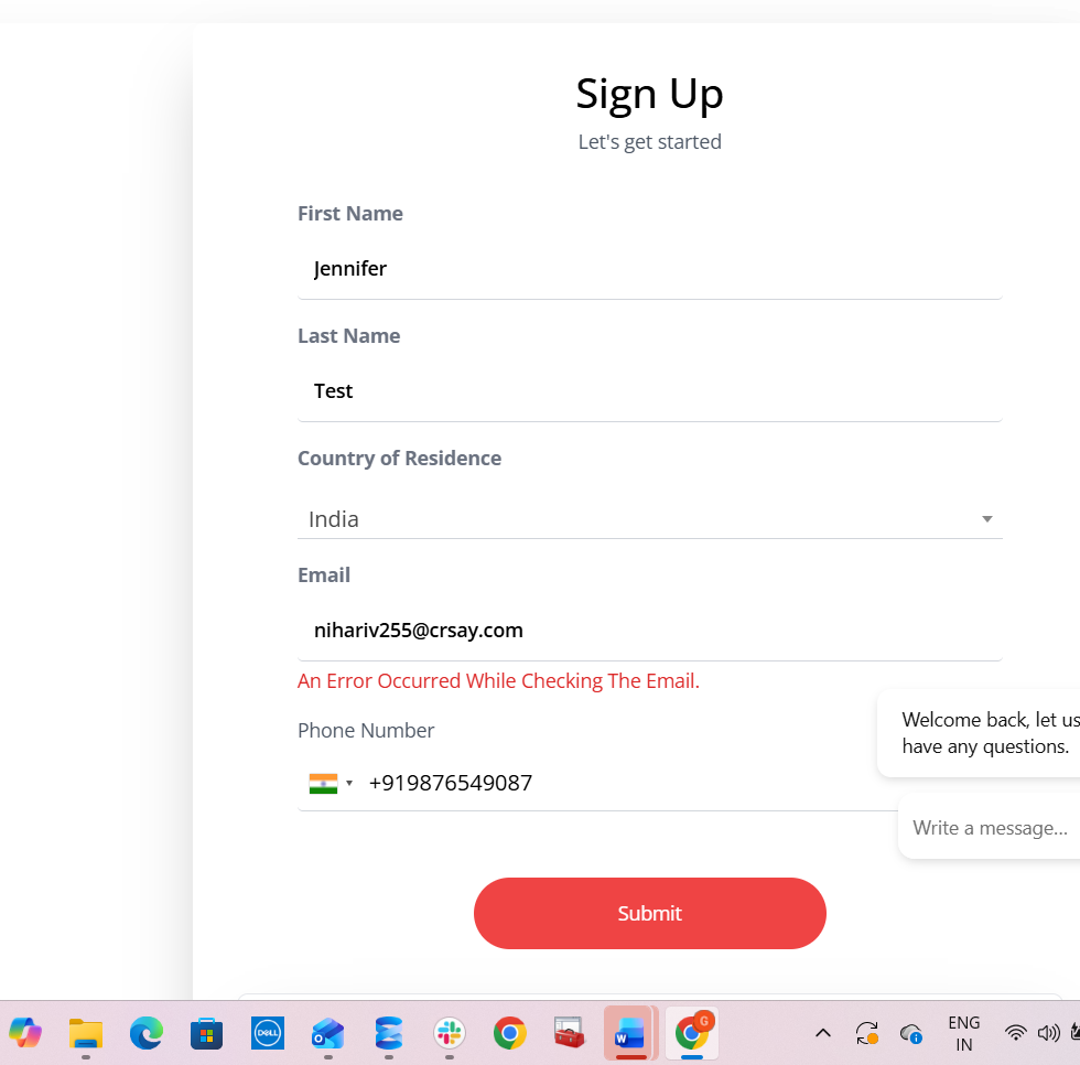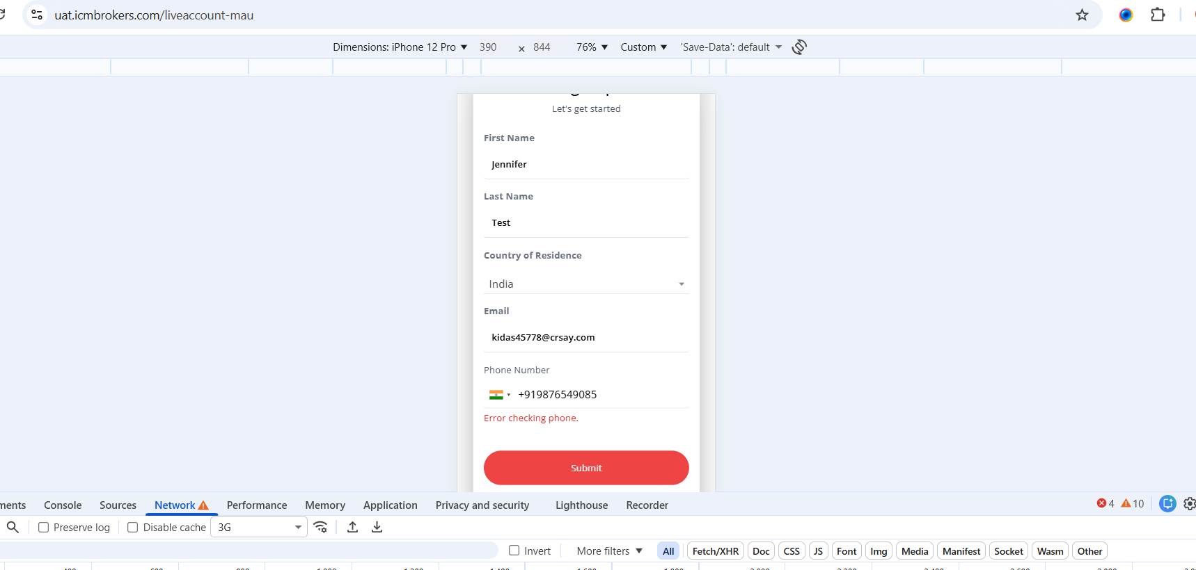 openICM BROKERS WEBSITE MAURITIUS - an issue showing in email field while registering