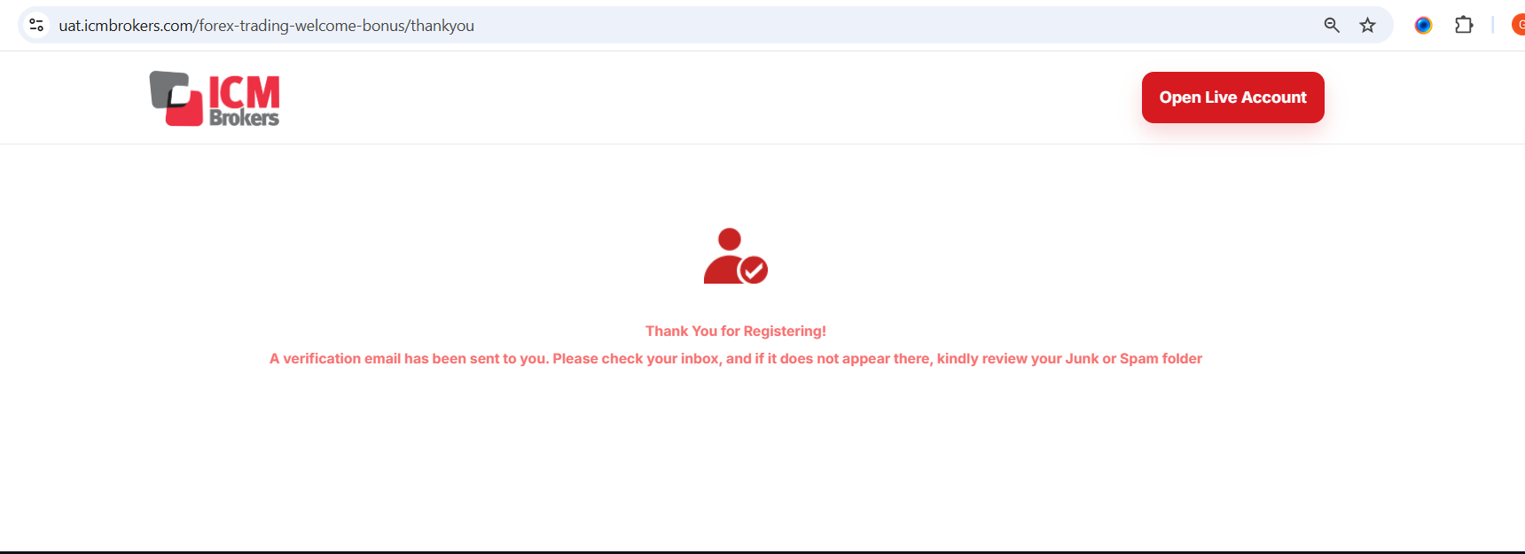 closedICM BROKERS WEBSITE MAURITIUS - The success message is showing in red color