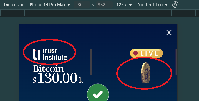Now, the "Trust Inst" logo and the bitcoin icon are getting truncated on mobile.